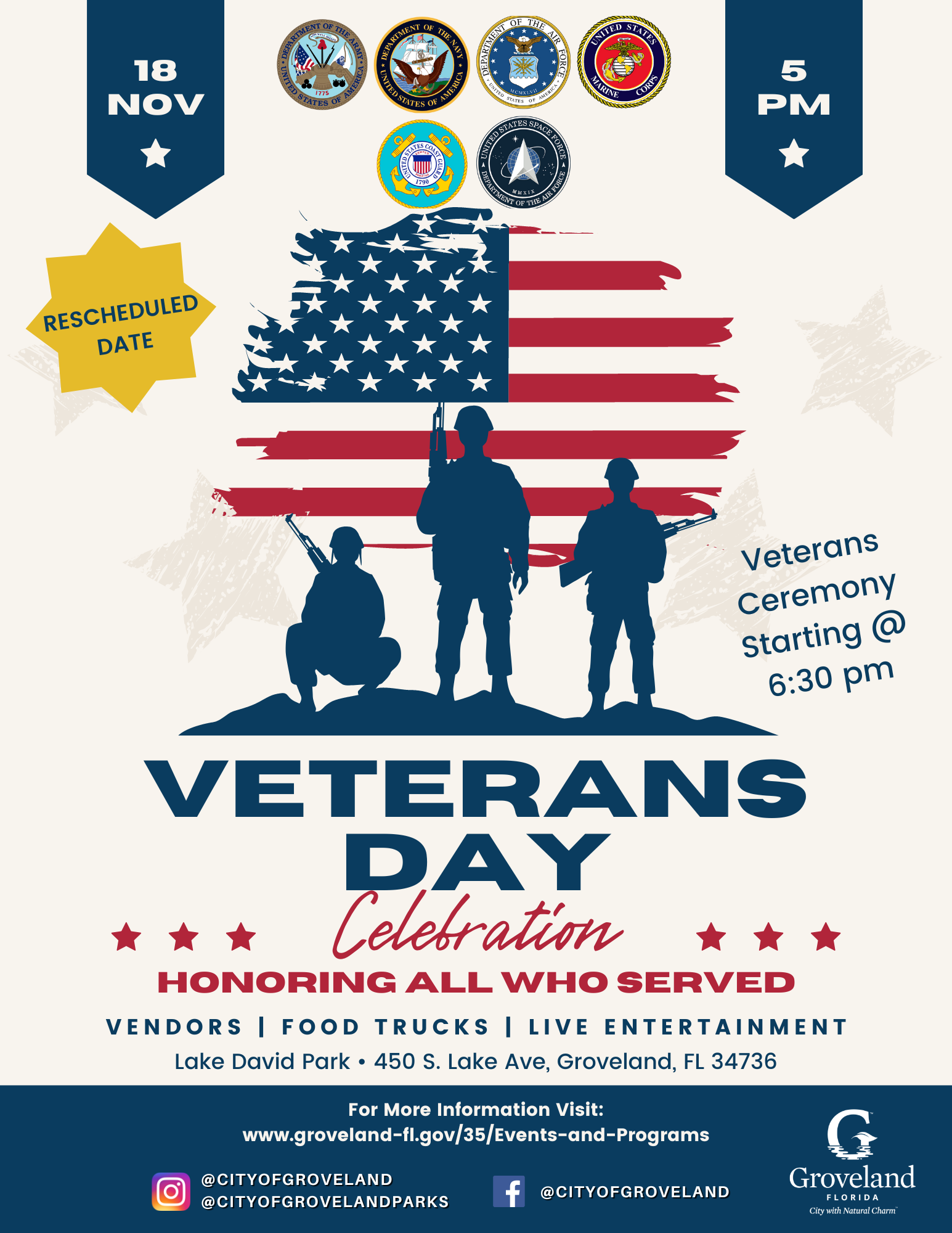 Due to Tropical Storm Nicole, the 11/11 Market and Veterans Day event has been rescheduled for Friday 11/18